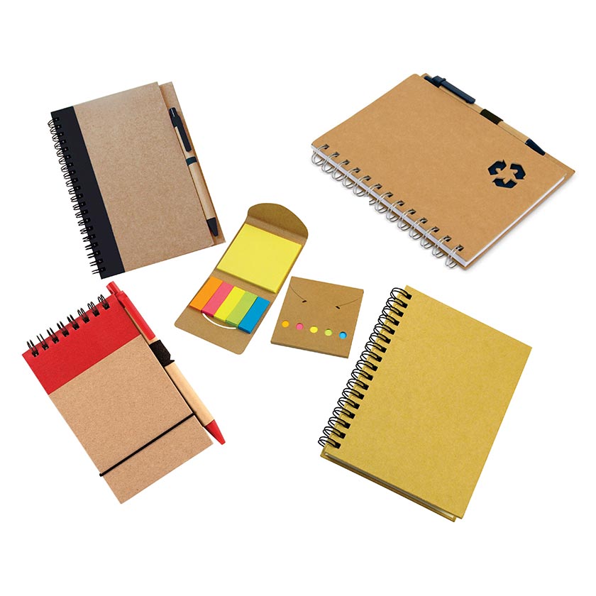 Precios bajos y con la mejor calidad, tenemos cuadernos y libretas ecológicas en tamaño A4, A5, A6, con anillo doble ring y la mejor impresión en serigrafía, colores especiales y acabados impresionantes. Tarjeteros de metal con impresión láser o serigrafía.