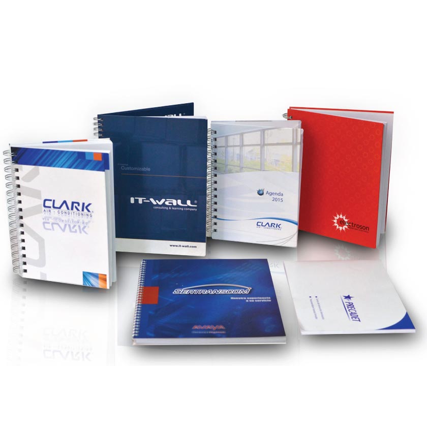 Impresión de Cuadernos Corporativas en diferentes tamaños A6, A5, A4. Impresión de Cuadernos Corporativos full color, cuatro colores, selección, un color, dos colores, tres colores. Impresión tira y retira, la mejor calidad en acabado, anillos doble ring, tapa dura, cartón kappa, cartón paja, forro couche, bolsillos, bolsillo blanco, doble bolsillo, bolsillo impreso, corte para tarjetas, doblado, línea de doblez, línea de agua, troquelado, cortes, refiles, troquel, barniz offset, barniz UV, barniz gloss, barniz mate, plastificado UV mate, plastificado gloss, sectorizado UV, Hot Stamping. Materiales, couche 90gr – 350gr, papelería especial, Kimberly, Shiro, papel ecológico.